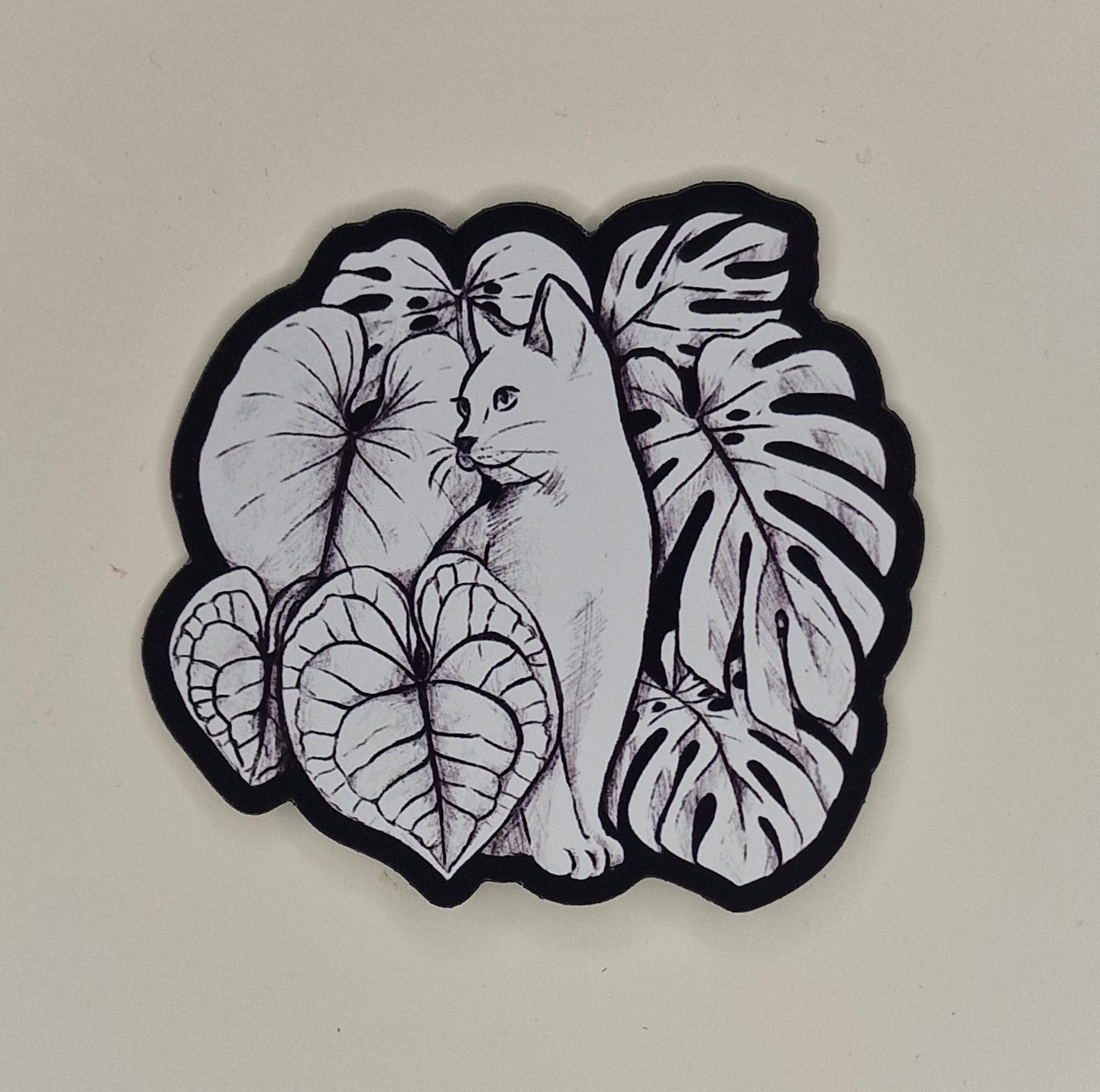 Magnet Cat & Leaves schwarz-weiß
